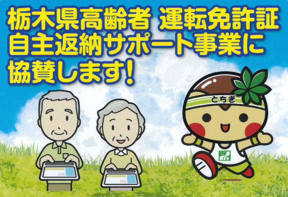 弊社では全国各県警の実施する「運転免許自主返納者支援」に協賛の申し出を行っております。